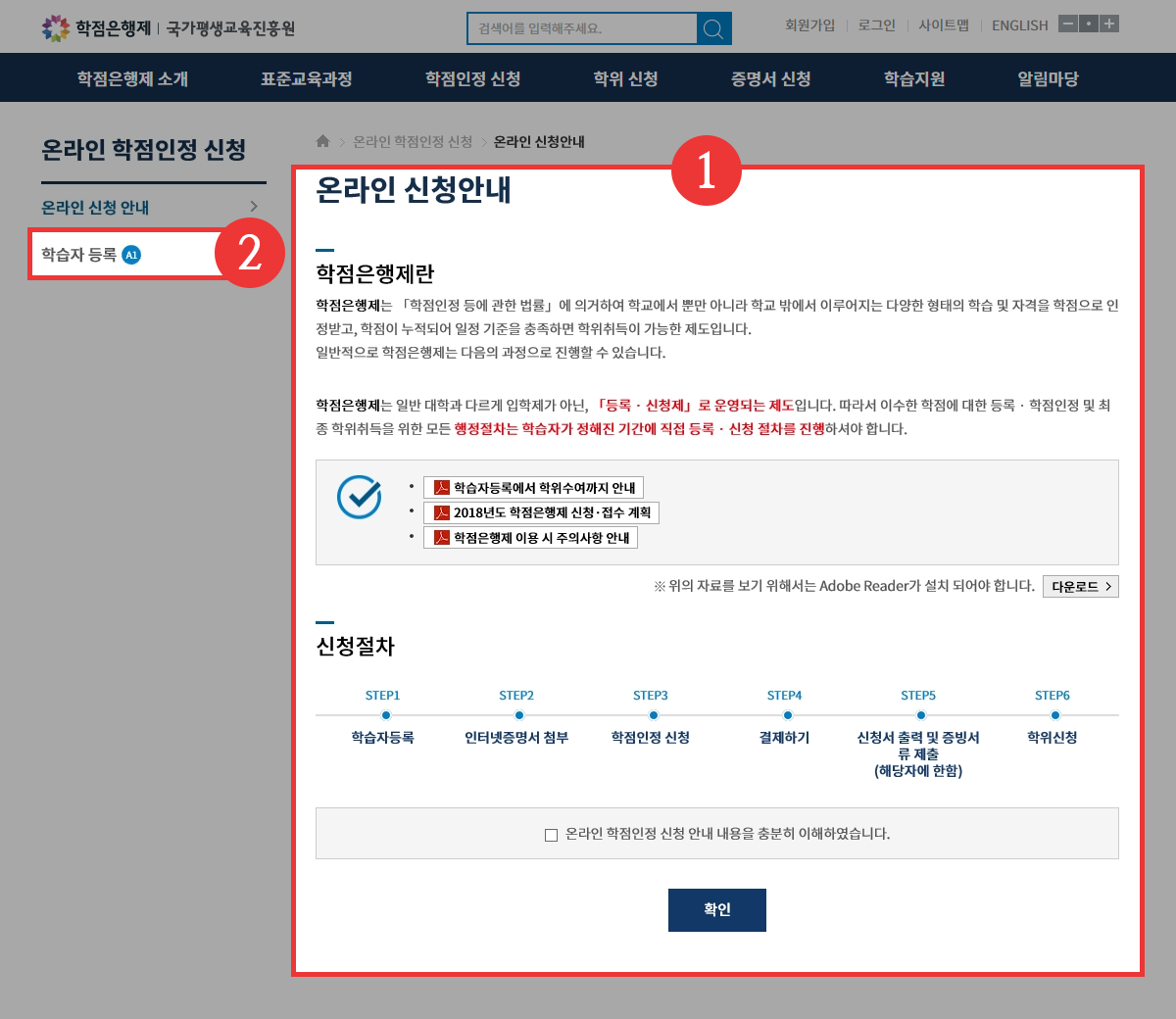 main학점은행제 > 각종신청방법 안내> 학습자등록 신청방법