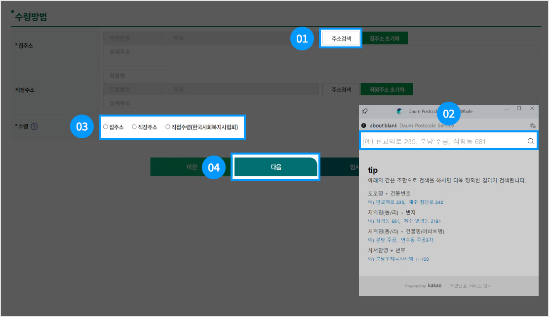 10. STEP 01_개인정보: 수령방법 입력