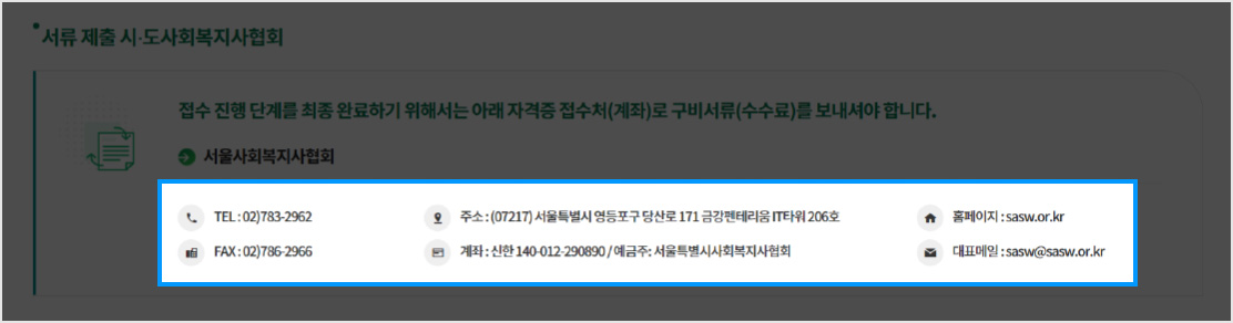 • 자격증 접수처 주소 및 계좌 확인하여 구비서류 등기발송 / 수수료 입금 진행